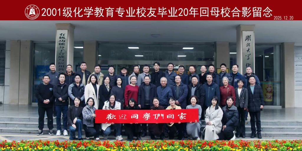 时光煮雨,岁月缝花。12月20日,湖北大学2001级化学教育专业的毕业生们阔别校园二十载后重返母校,相聚于化工学院二楼,共赴这场毕业二十周年的同学会。来自全国各地的30位同窗与昔日恩师再度重逢,一同追忆青葱往昔,畅谈人生历程,现场温情满溢,笑语不断。本次聚会在任小明、万丽、李琴三位留校校友的精心策划与统筹下,活动最终圆满举行。二十年前,大家怀揣师范生的理想奔赴四方;二十年后,尽管多数同学坚守初高中基础教...