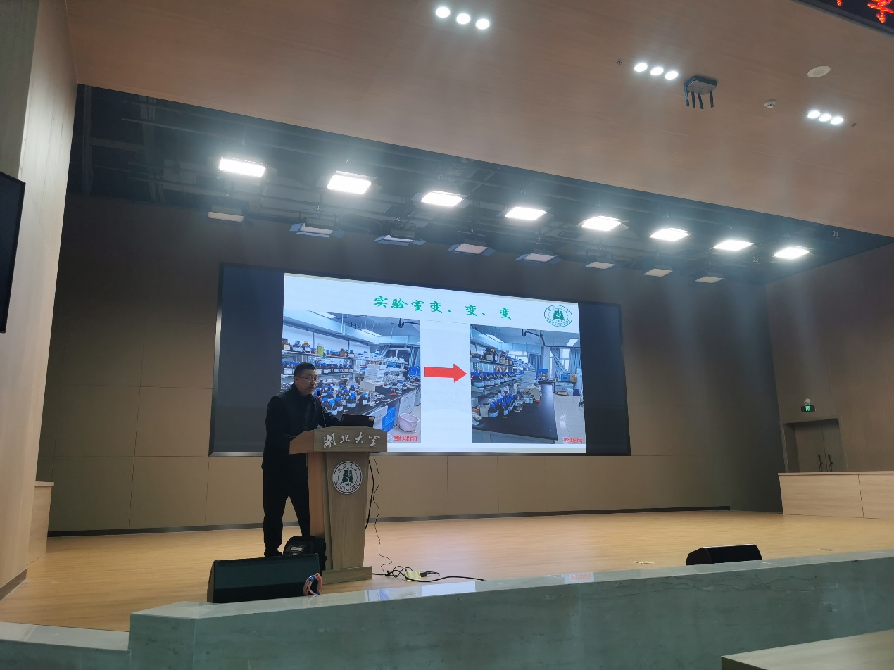紧随其后的是第三阶段,由学院安全管理员、高级实验师胡高平主讲实验室安全规范与风险防控。胡老师以日常巡视所发现的安全问题为切入点,剖析了常见安全隐患、预防手段及处理流程,旨在夯实科研实践的基础保障,筑牢“安全第一”的实验理念。