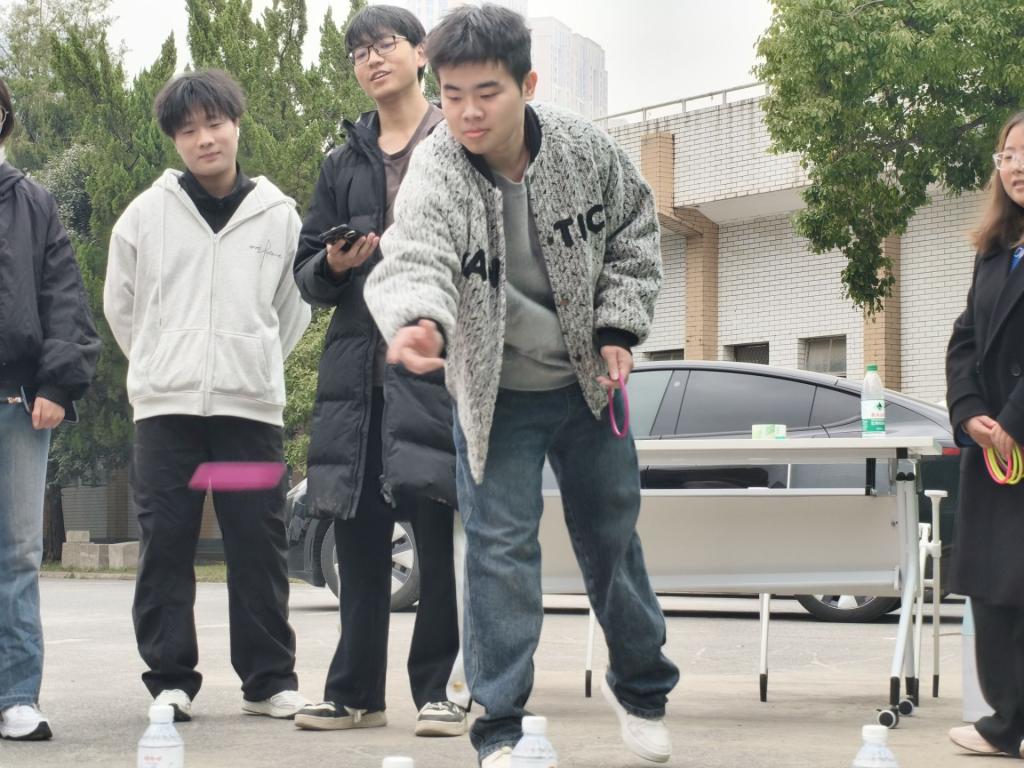 短暂的休息后,活动进入第二阶段——备受期待的校园趣味定向越野。本次定向越野精心设置了六个趣味盎然的游戏点位,充分考验了队员们的个人技巧与团队协作能力。在二号体育馆门口的“积分套圈”点,队员们凝神聚力,手腕轻抖,套圈划出优美弧线;一期篮球场的“趣味投壶”则带来了古风雅趣,队员们屏息瞄准,力求羽箭精准入壶;图书馆后的“你划我猜”是默契的终极考验,夸张的肢体语言和瞬间的灵感迸发引发阵阵欢笑;图书馆前的“多人集体跳绳”需要步调一致,摇绳与起跳的节奏完美融合;月亮广场的“同心击鼓”将团队协作推向高潮,队员们围拢一圈,通过细绳控制鼓面,共同颠球,每一次成功的击鼓都伴随着团队的欢呼;最后在曦和园的“足球九方格射门”中,队员们脚法精准,为争取高分而奋力一搏。整个校园化身为一个充满挑战与乐趣的巨大游乐场,欢声笑语回荡在各个角落。下午5时,经过最终积分认定排名,应用化学2301班、学术硕士2501班、化学2301班分获第一、二、三名。至此,本届体育文化节在汗水、欢笑与收获中圆满落下帷幕。