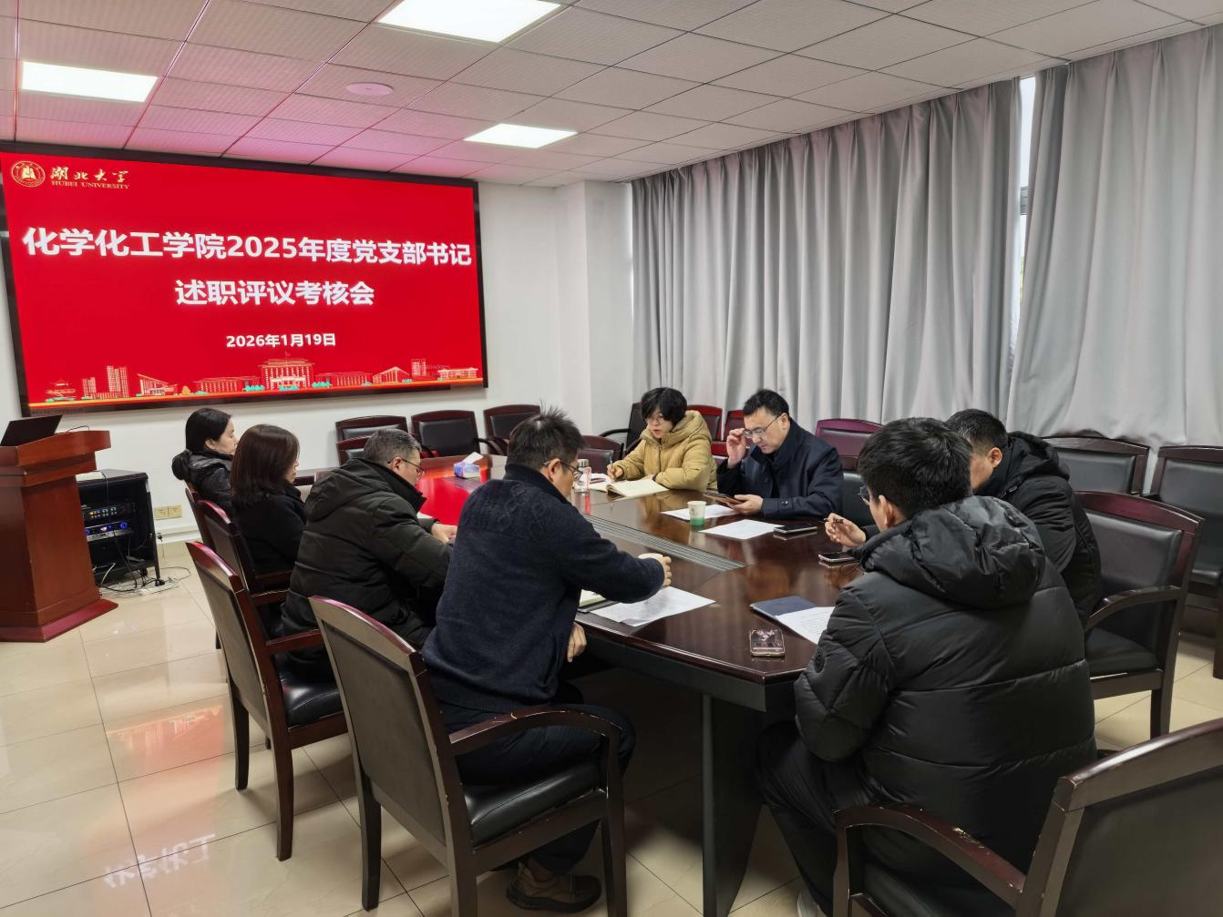 1月19日下午,化学化工学院党委在学院D320会议室召开2026年第2次党委(扩大)会暨2025年度党支部书记抓党建工作述职评议考核会。会议由学院党委书记刘念主持,学院党委委员、全体党支部书记参加会议。